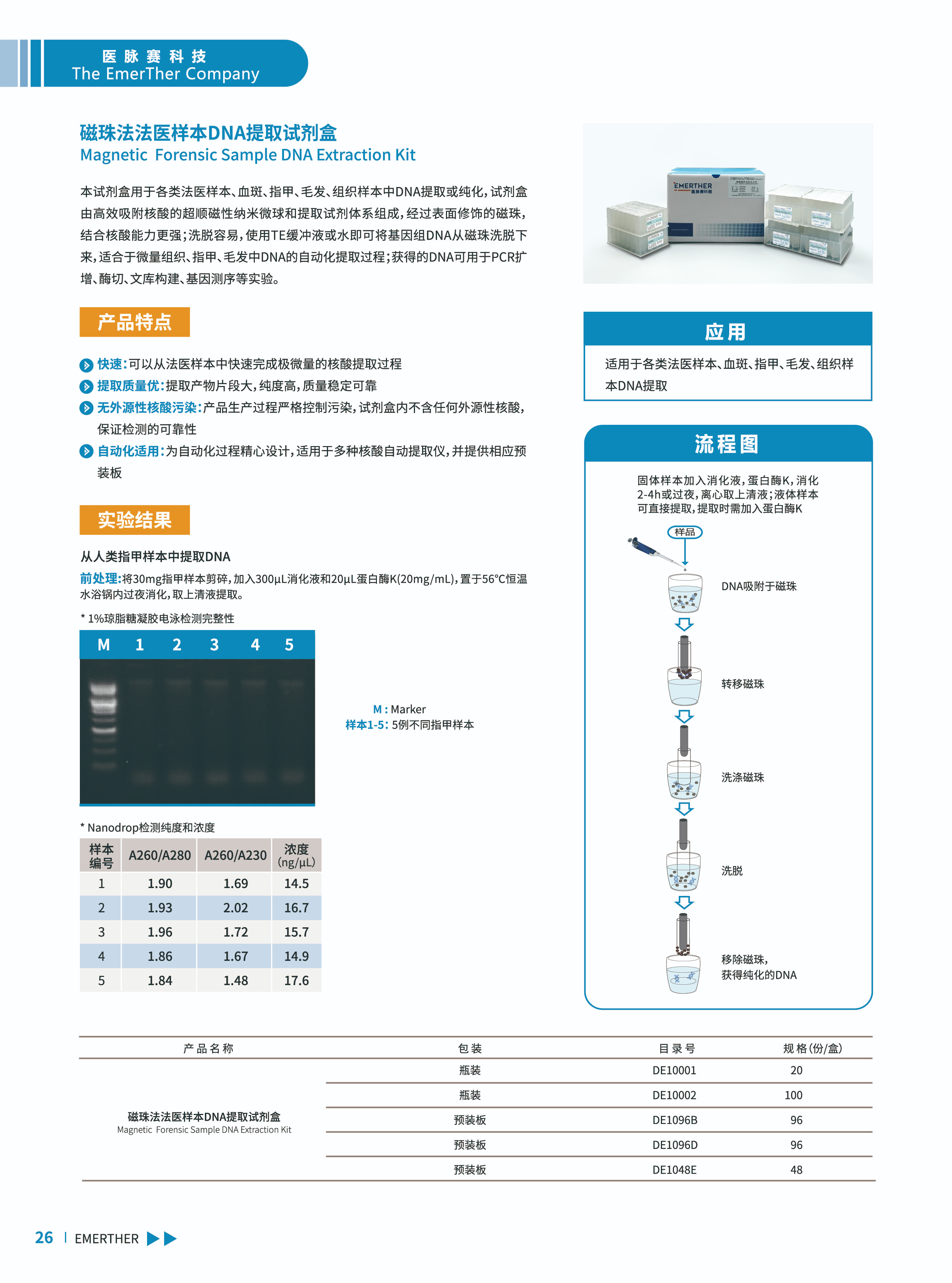 DE10001 | 20份 | 瓶装,适用于手工提取及Tecan、Hamilton等全自动移液工作站 |