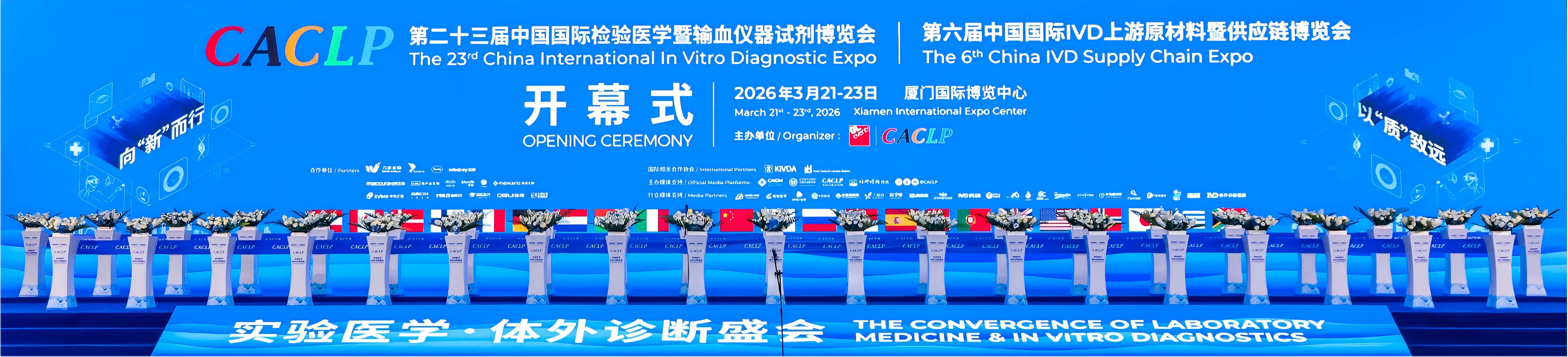 2026年3月21日上午,在厦门国际博览中心举办的第二十三届中国国际检验医学暨输血仪器试剂博览会&第六届中国国际IVD上游原材料暨供应链博览会(CACLP)于3月23日圆满落幕!