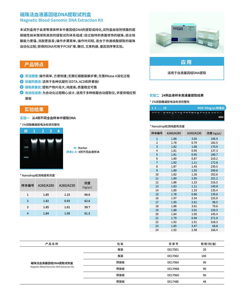 | DE17001 | 20份 | 瓶装,适用于手工提取及Tecan、Hamilton等全自动移液工作站 |